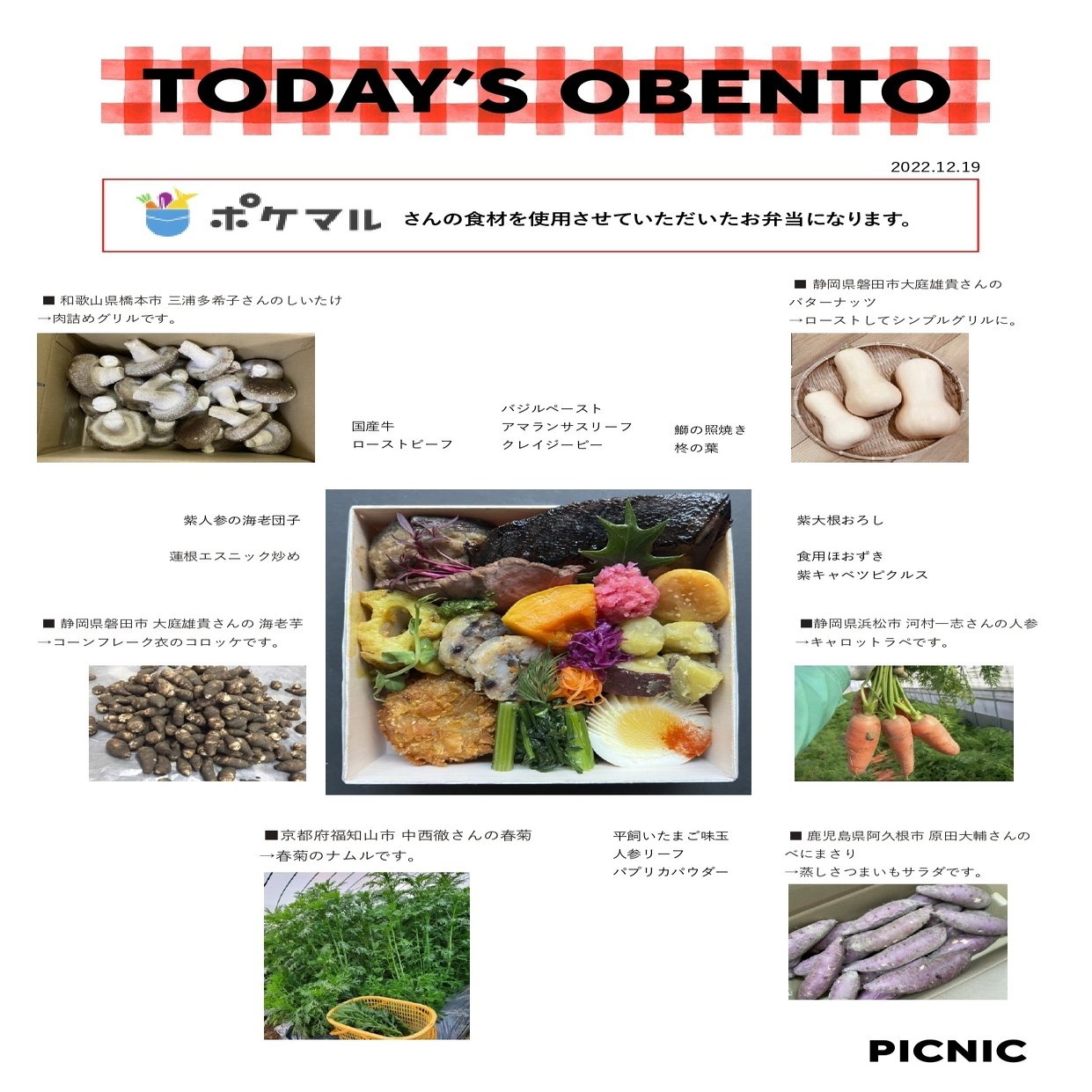 お弁当に使っていただいたポケマル生産者さんの食材