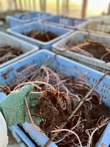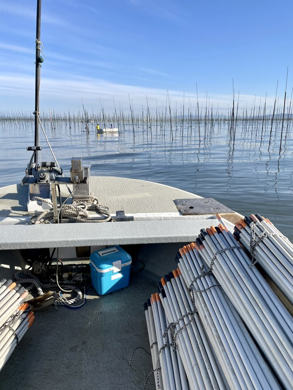 昨年は、秋の残暑が続き、夏日の中で支柱建てから種付け前の準備を進めていました。 10月になっても雨が降らないため、水温もなかなか下がらず、『プランクトンが増えてきた状況で、このまま種付けしてまうとヤバいな・・・』と思う毎日でした。