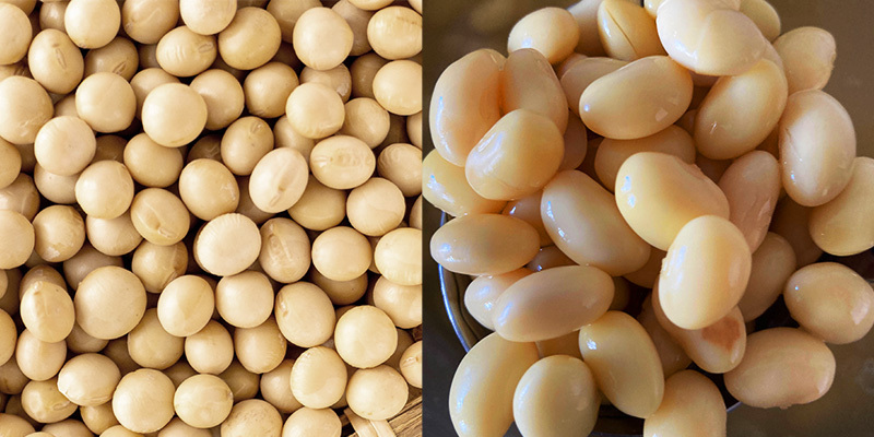 大豆を煮て、糀や塩と混ぜるだけだよ〜。