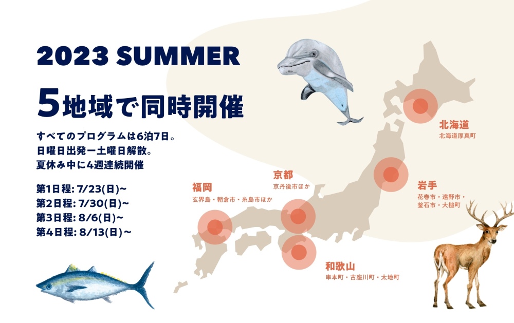 今回は、北海道、岩手、和歌山、京都、福岡と、5つの地域で開催!各地域ごとに特色のあるプログラムをお楽しみください。(詳細は下記)