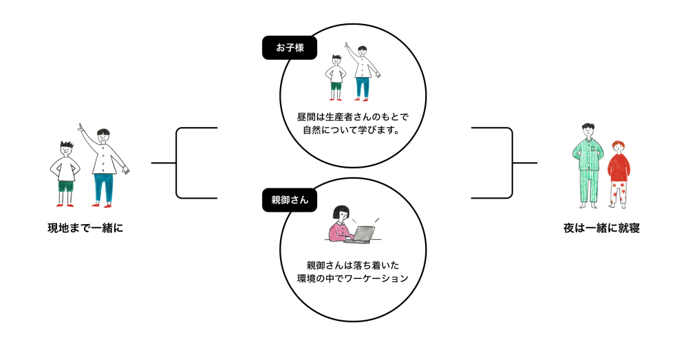 6泊7日の滞在中、お子さんがアクティビティに参加している間は、親御さんはWi-Fi環境の整った施設でテレワークをすることができます💻親御さんと離れ、自然と触れ合ったお子さんは、ー回りも二回りも成長して宿泊先へ帰ってきますよ👍
