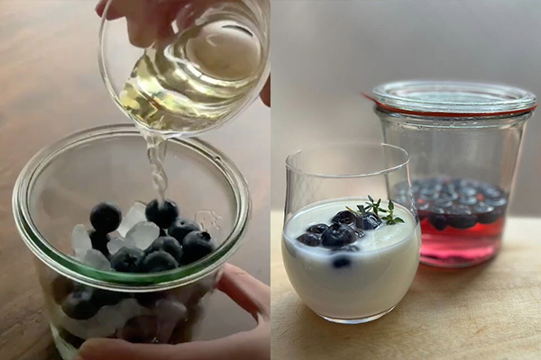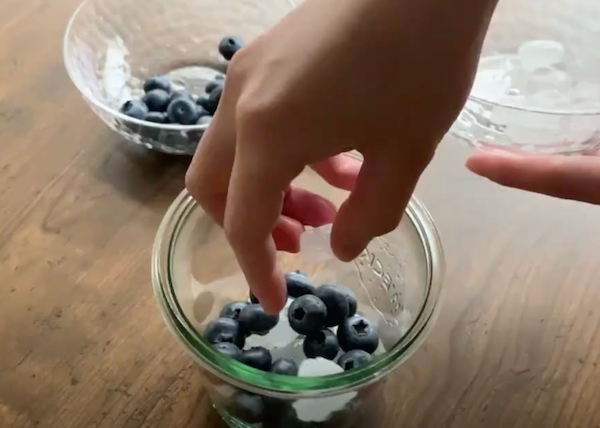ブルーベリーのみを水洗いして水気を取ったら、氷砂糖とりんご酢を1:1:1で交互に瓶に詰めるだけ。お酢も同じ分量なのでとっても簡単です。