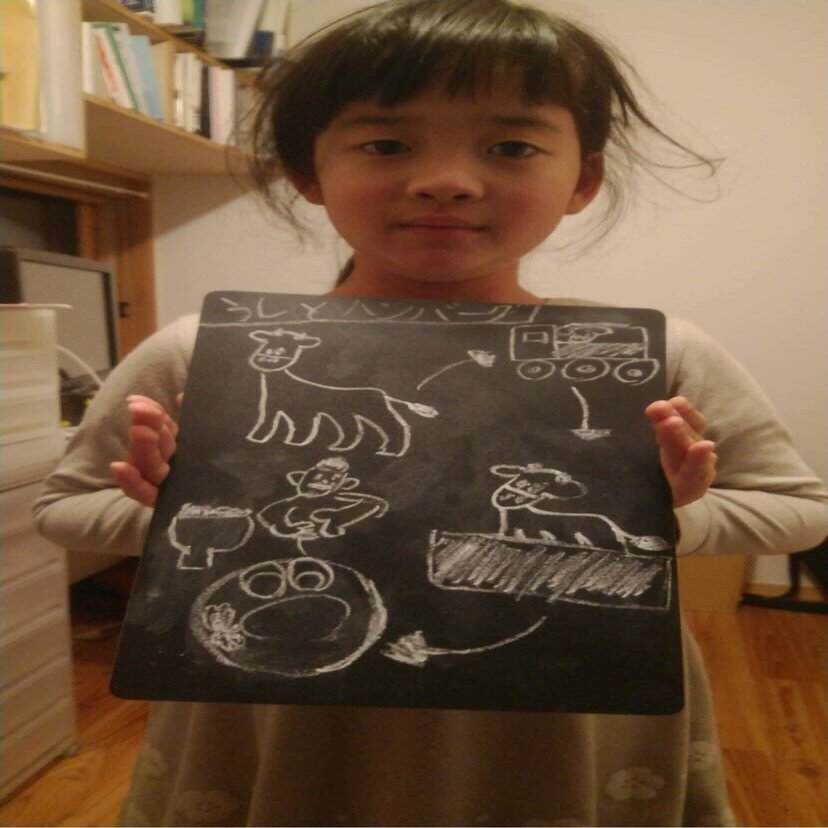 「うしとハンバーグ」というタイトルで、娘さんが描いてくれた図
