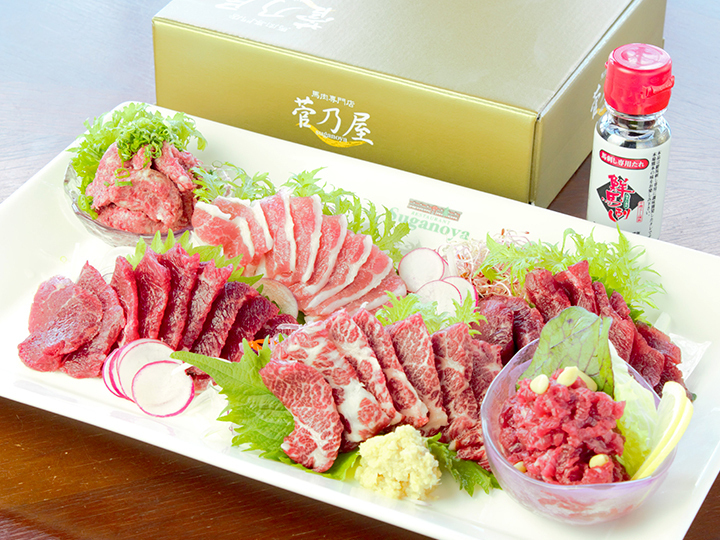1. 馬刺しが初めての方にも◯食べ比べできるバラエティーセット!