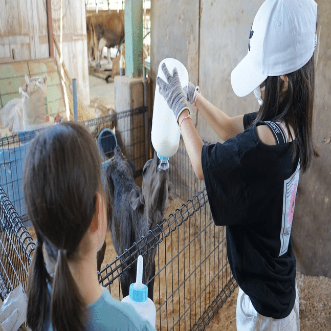 牧場では子牛のお世話