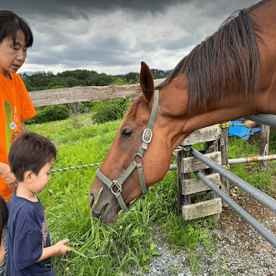 さらに競走馬の飼育を行うこちらの農園では、馬と触れ合う体験も。