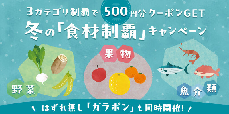 3カテゴリー制覇で【500円クーポン】GET✨&ガラポンも同時開催🎉「冬の食材制覇キャンペーン」