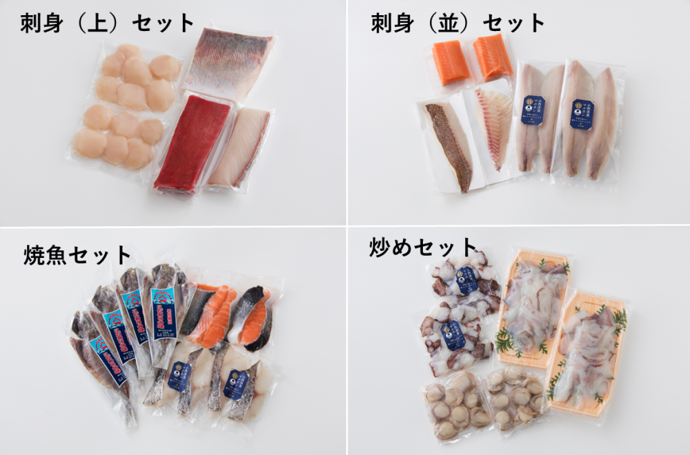 今回ご用意したのは「刺身(上)」「刺身(並)」「炒め物」「焼魚」の4つのセット!
