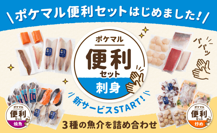 新シリーズ誕生❗刺身🍣焼魚🐟炒め🦑『ポケマル便利セット📦』魚介の食材を3種詰め合わせ