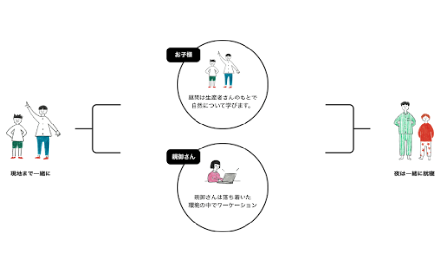 親御さんはお子さんが体験に出かけている間は滞在先でリモートワークのお仕事ができますし、地域の観光に出かけたり、もちろんお子さんと一緒に体験に参加※することも。