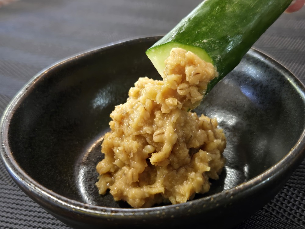 当社の味噌は麦味噌なので、麦の粒が残っている点が個性的かなと。自宅だと定番のお味噌汁、サバの味噌煮なんかに使ったりすることが多いですが、麦の粒々で少しボリュームが出るというか。マヨネーズと1対1で混ぜてディップソースにしたりもするんですが、ソースなのに具材感があっておもしろいかなと思います。
