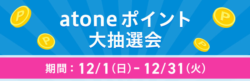 ・対象者:すべての方(12/1〜31の期間中、atone翌月払い利用で税込5,000円以上お買い物した方)