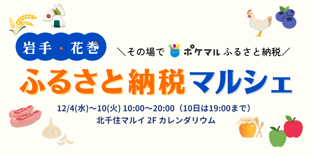 北千住マルイにて、2024年12月4日(水)〜10(火)に「その場でポケマルふるさと納税 岩手・花巻ふるさと納税マルシェ」を開催します!