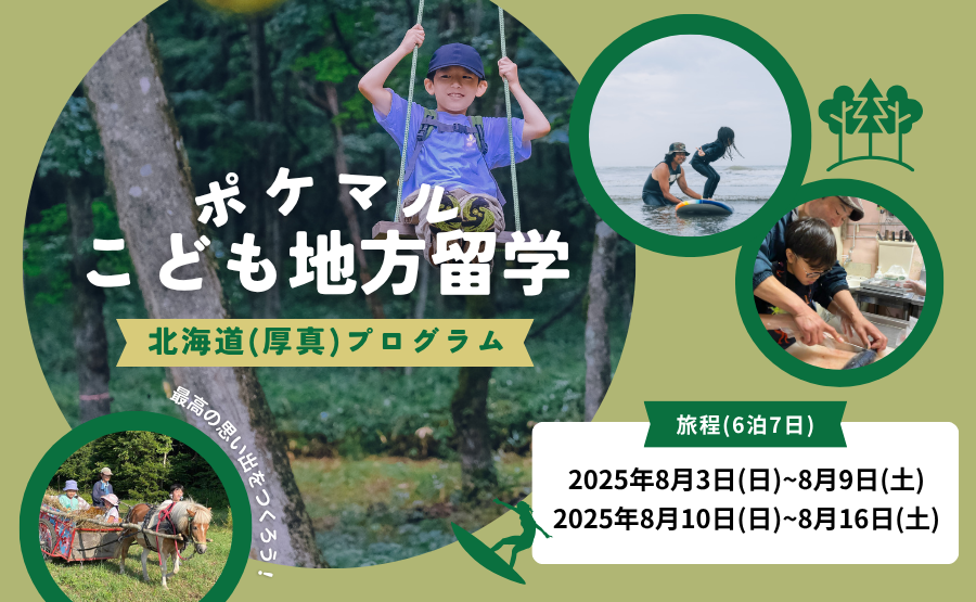 こんにちは。ポケマルです。2022年より開催を続けてきたポケマルおやこ地方留学。参加されたご家族から「子どもだけで参加できるプログラムも!」というお声にお応え!北海道厚真町を拠点に、「ポケマルこども地方留学」を6泊7日の期間で2日程募集を開始します。