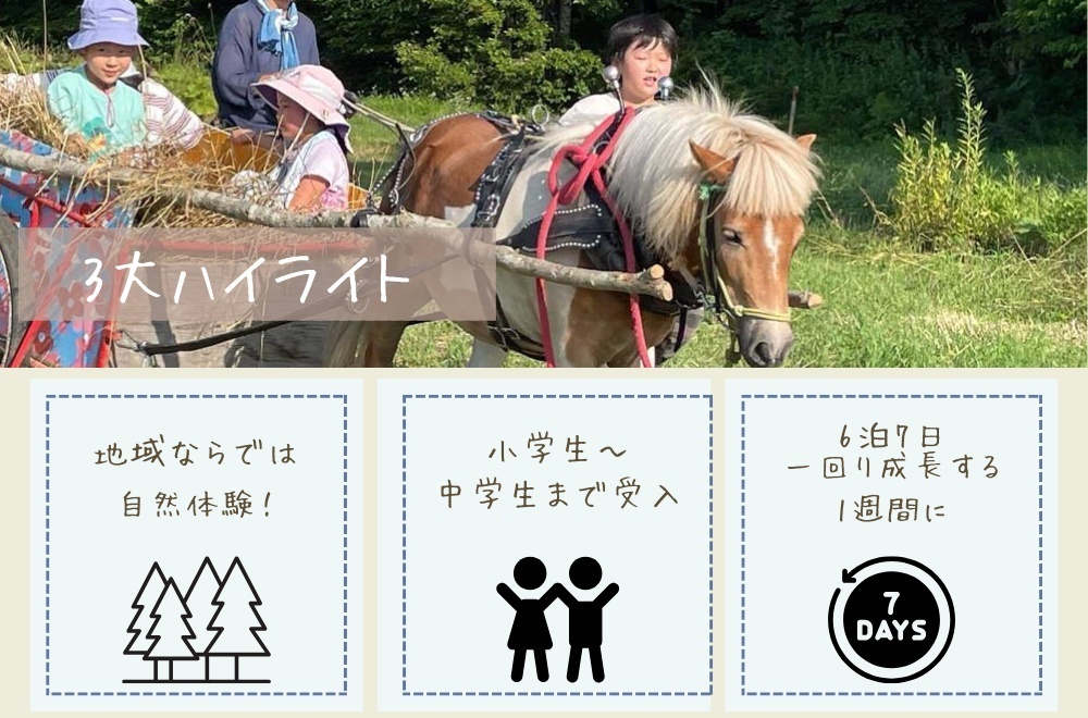 おやこ地方留学と同じく、日曜日出発~土曜日帰着とする7日間。中5日間は終日、厚真町の自然の中で生産者さんたちとの体験活動に取り組みます。