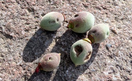 昨年の不作を乗り越え、希望が見え始めたところでの出来事…。雹による小さな傷は梅の成長とともにやがて大きくなり、固くなってしまう。やわらかい果肉が魅力の南高梅にとって致命的です。