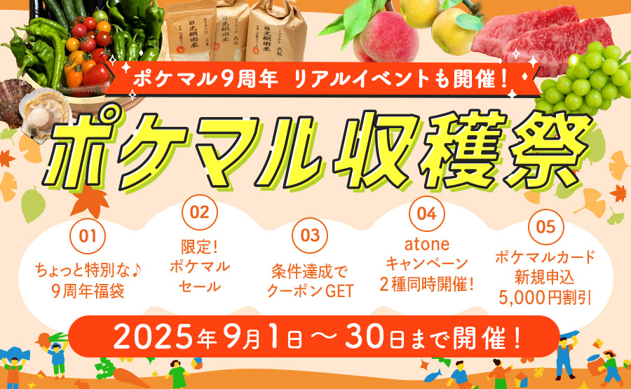 対象者:はじめてポケットマルシェで後払い(コンビニ/ATM)を利用された方(9/1〜30の期間中、後払い(コンビニ/ATM)5,000円以上お買い物した方)