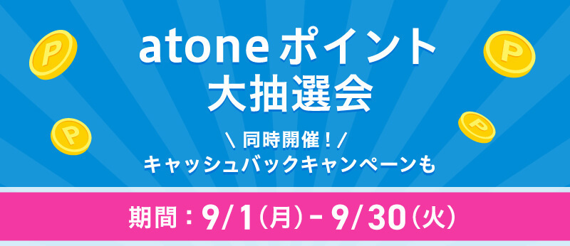 ・対象者:すべての方(9/1〜30の期間中、atone翌月払い利用で税込5,000円以上お買い物した方)