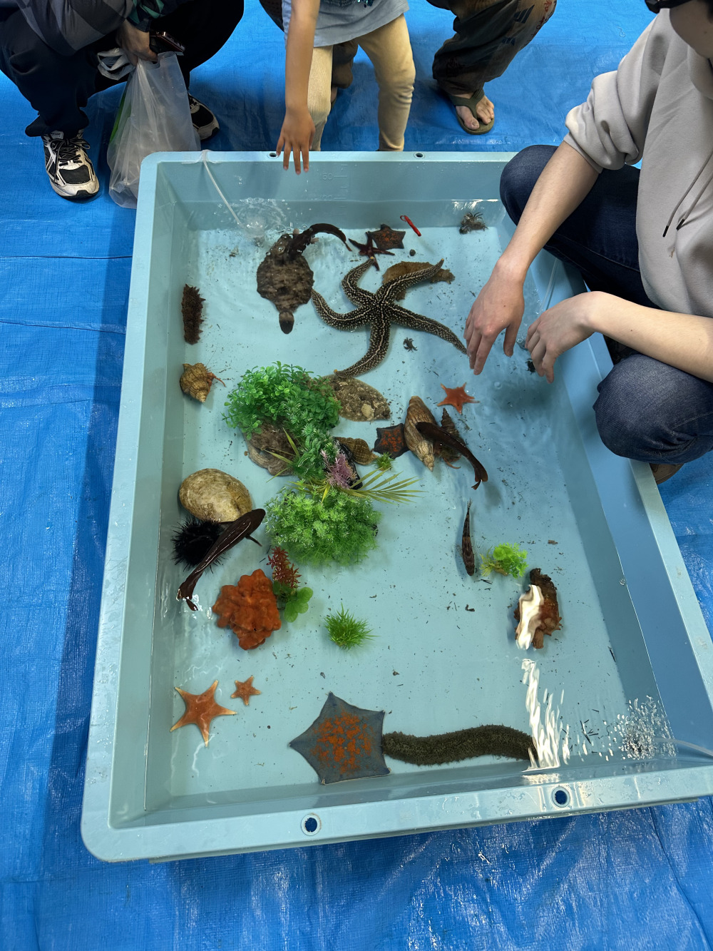 地元漁師さんや漁家のお母さんと一緒に、三陸でとれた新鮮な魚介類のさばき方等を学びます。お魚タッチプールでは、海の生きものと直接ふれあえますよ!