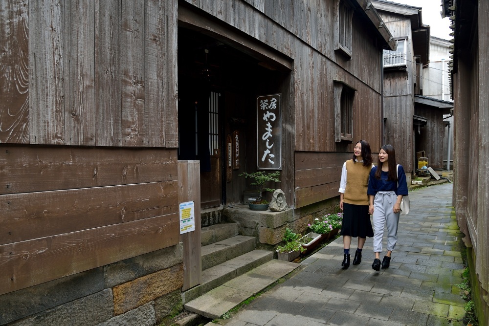 宿根木の最大の魅力は、その独特な町並み。細い路地が迷路のように入り組み、杉板張りの家々が肩を寄せ合うように建ち並ぶ様子は、他では見られない風景です。家屋の多くは船大工の技術を活かして建てられており、屋根や壁の造りに船の構造が取り入れられているのも特徴です。まさに「海とともに生きる町」の象徴といえるでしょう。