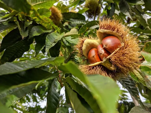 穴水町で栗園を営む東井栗園は、約60年の歴史を誇る家族経営の観光栗園です。現場作業は三男と両親の3人が担当し、兄2人はSNSやブログなどを担当。栽培している栗は約400本で、震災で離農した近隣農家の畑も引き継いでいます。粒が大きくミネラル豊富な「能登栗」は9月中旬に最盛期を迎えました。