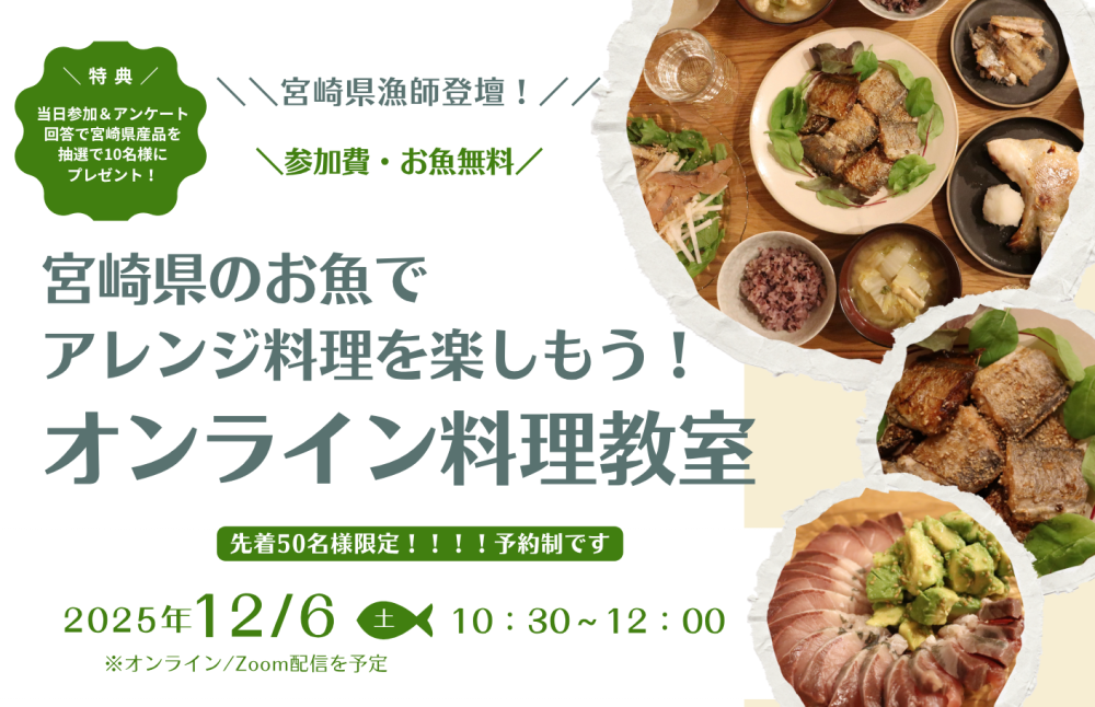 宮崎県のお魚を使ったオンライン料理教室を開催💡【宮崎県の水産物の送料キャンペーンも実施中!】