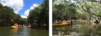 途中、マングローブ原生林にてカヌー体験