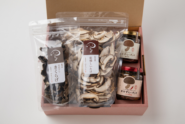 しいたけ栽培は、どうしても規格外品が出てしまうので、それを使って付加価値のある商品を作りたいと思い、震災前よりオリジナルロゴとパッケージを作って、「おかずしいたけ」や「能登しいたけカレー」を開発していたんです。お陰様で美味しいと好評をいただいています。徐々に製造量を増やしつつ、しいたけの生産量も震災前のように再興できるよう、スタッフと一緒に頑張っていきたいです。