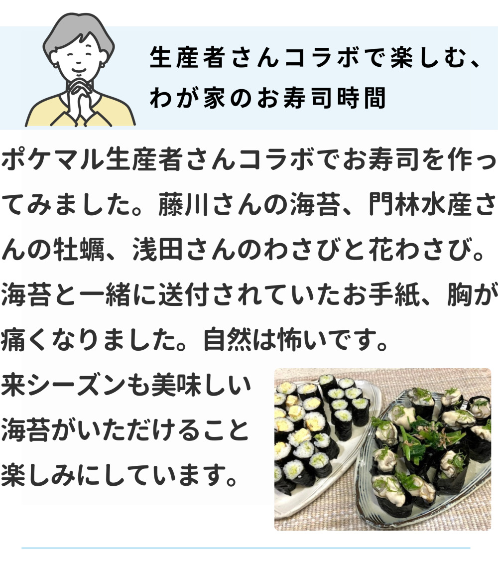 スーパーや他の通販サイトとは一味違う、「生産者から直接届く」という体験。いつもの食卓が、少しだけ楽しくなる。ポケマルには、そんな声がたくさん届いています。今回はその中から、いくつかご紹介します。