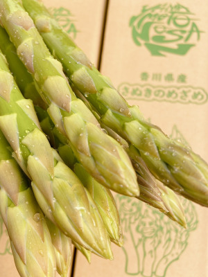 「さぬきのめざめ」は香川県生まれのブランドアスパラです。箱を開けた瞬間、まずはその長さ、太さに驚くはず!