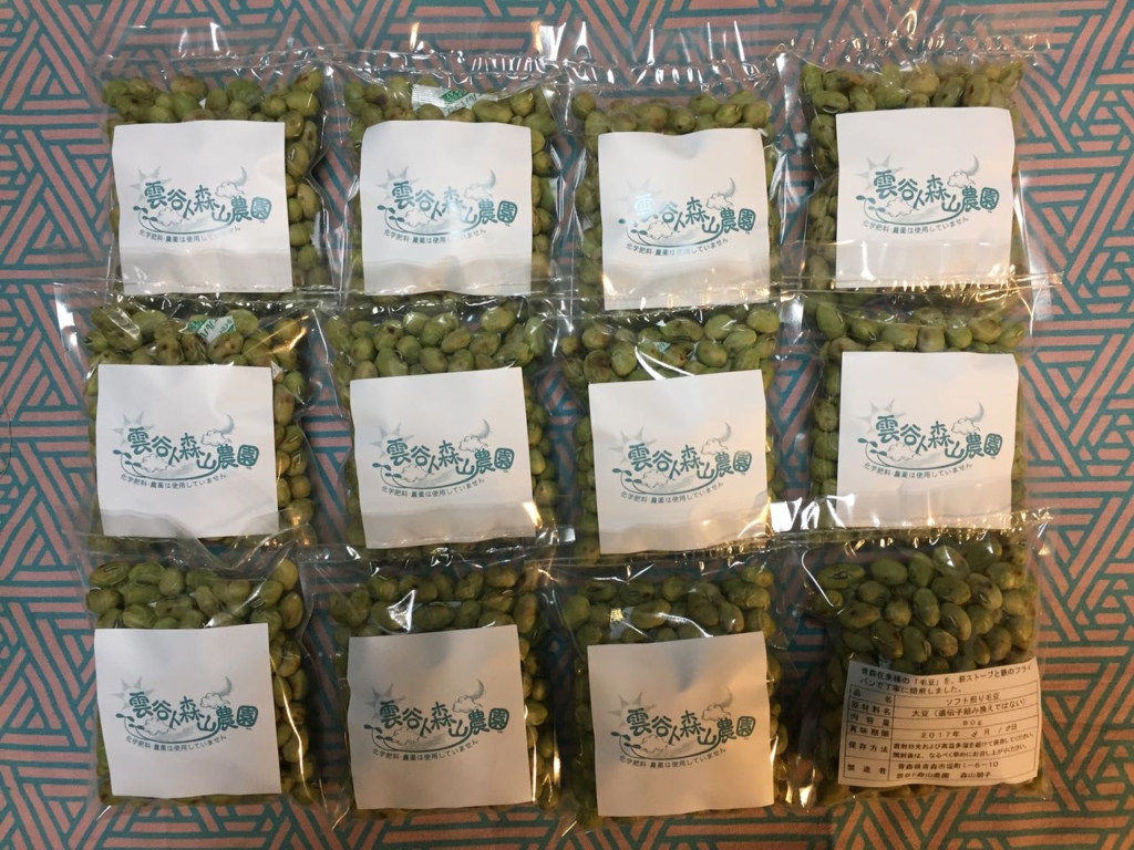 毛豆という青大豆を選別し水に浸してフライパンで煎ったものです。