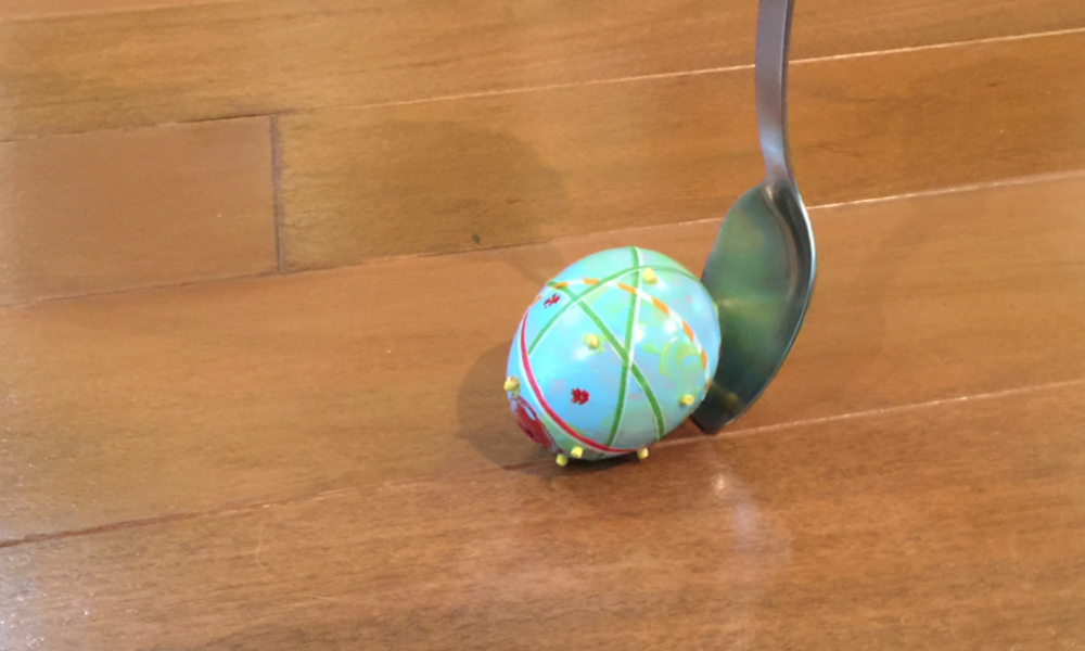 エッグロールは、大きめのスプーンをつかってイースターエッグを転がしてゴールを目指す遊びです。
