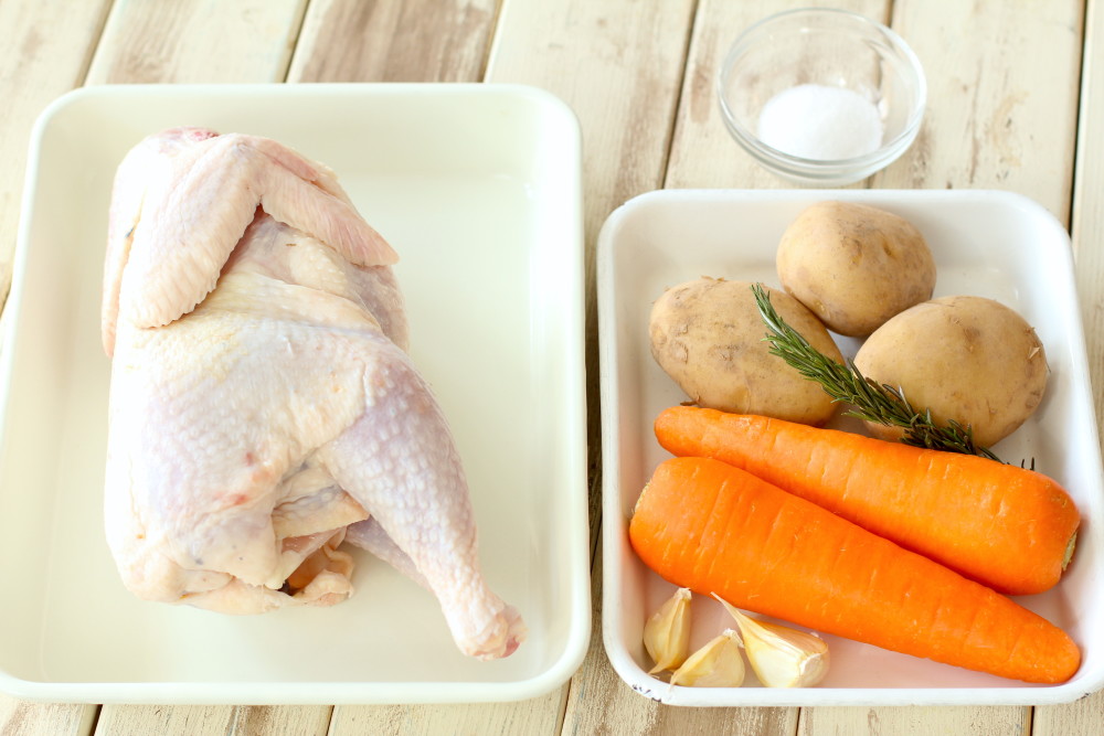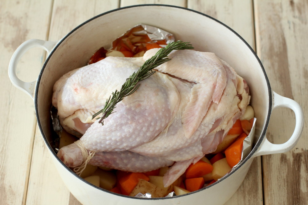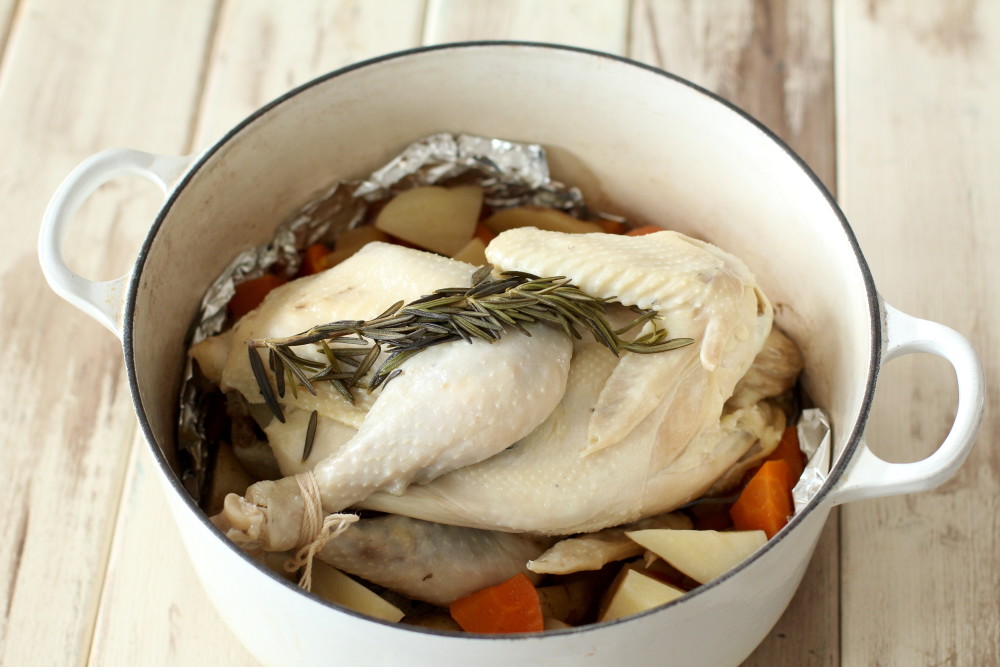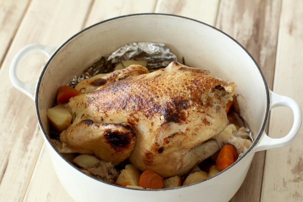 お鍋に入れて焼くだけ! 丸鶏と野菜の丸焼き