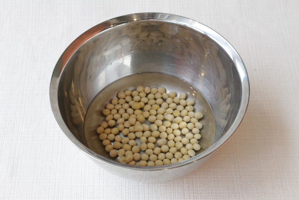 1.大豆(乾燥)はさっと洗い、たっぷりの水に一晩浸しておく。