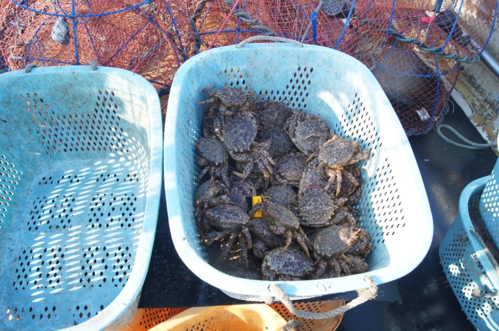 カニ目線。 「やべ、やべ。。仲間めっちゃ水揚げされとるやん。」