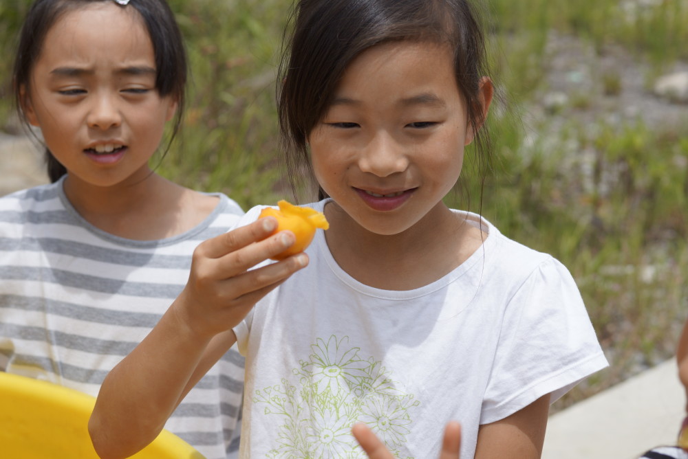 深見さんは毎年、小学生など地元の子どもたちを招いて、梅の収穫、梅シロップ・梅干しづくりの体験会を開催しています。今では40〜50人ほどが参加。子どもたちが目を丸くして驚くのは、その香りと味だそう!