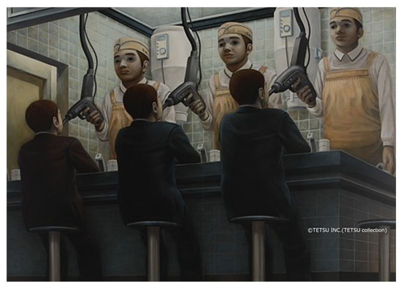 これは、現代社会を痛烈に風刺する絵画を手がけてきた画家・石田徹也さん(故人)が描いた「燃料補給のような食事」です。