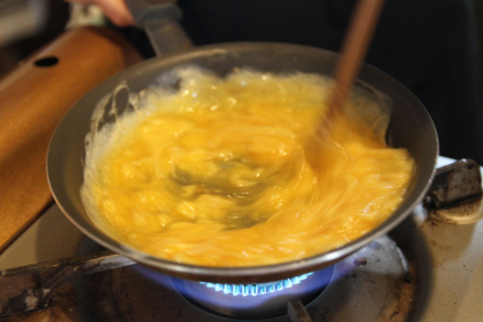 今回は、Mariaさんが一人ひとりのオムレツを目の前で焼いてくれました。