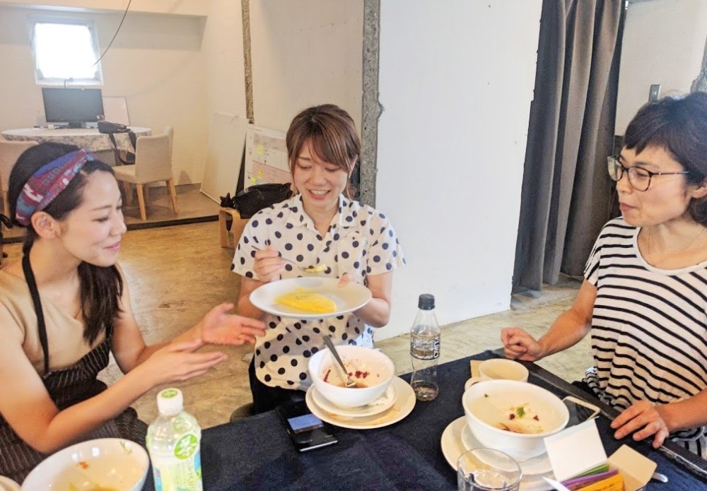 「半分寝ながら作っていたときも・・・気づいたらオムレツができあがっていたことがありました。もしかしたら目をつぶりながら作れるかもしれません」と手際よくオムレツをつくりあげるMariaさんにみんなの目が釘付け。