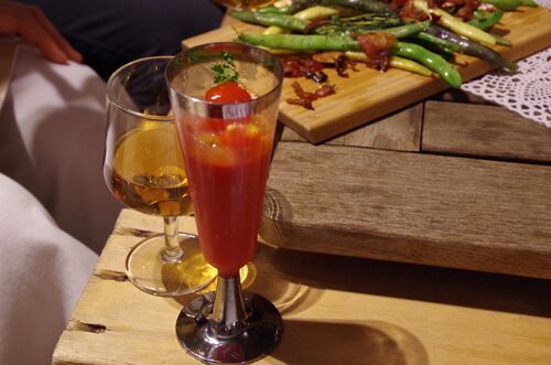 前菜として、びっくりするほど甘いトマトのゼリーや