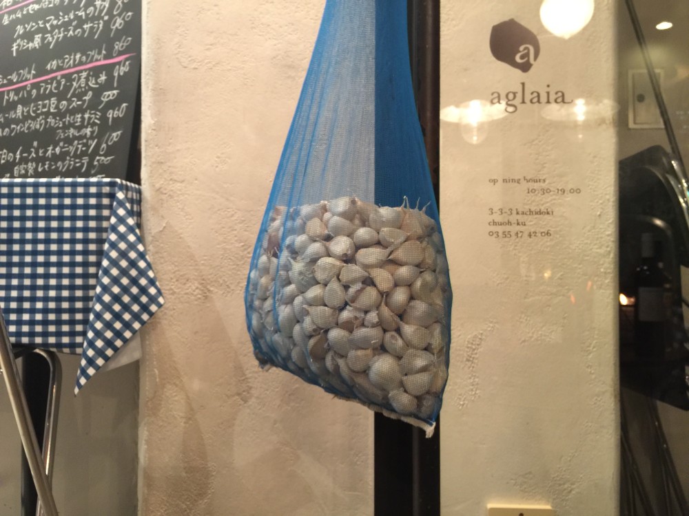 入り口の扉にかけてあったのは、ネットの中にたっぷりはいっているにんにく。これはもしや徳田さんの…?