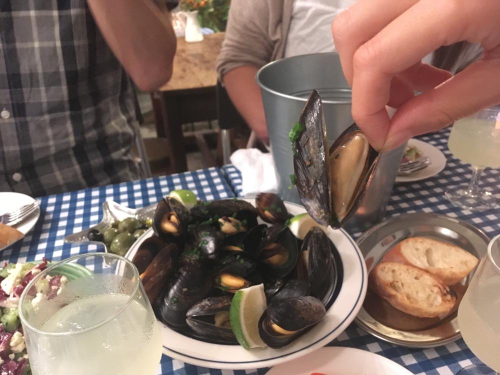 山盛りに盛られたほかほかのムール貝に歓声が上がります。
