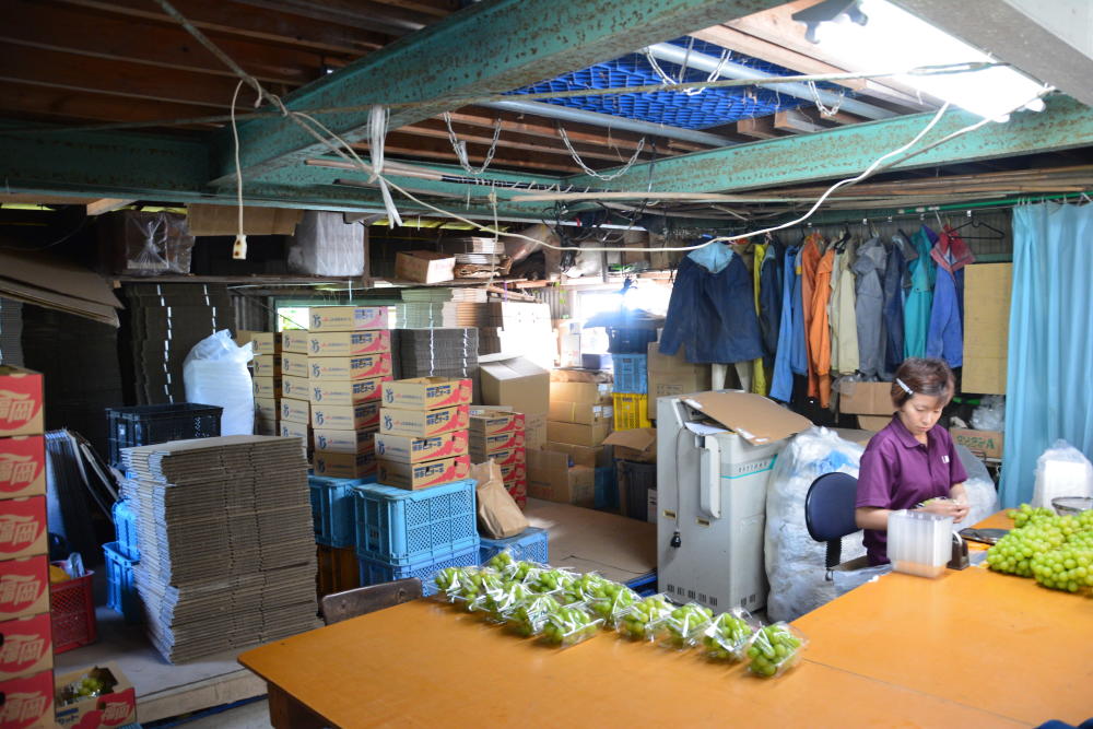 災害の影響でブドウ出荷は例年より遅れ10月半ばまで。その後に柿の出荷がはじまる。