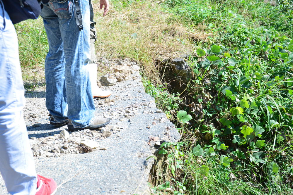 寸断された柿畑への道。損傷が激しいこの道の復旧は諦め、別の道を作った