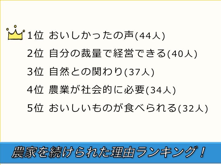 農家としてここまで続けてこれた理由を聞いたところ、このような結果に!
