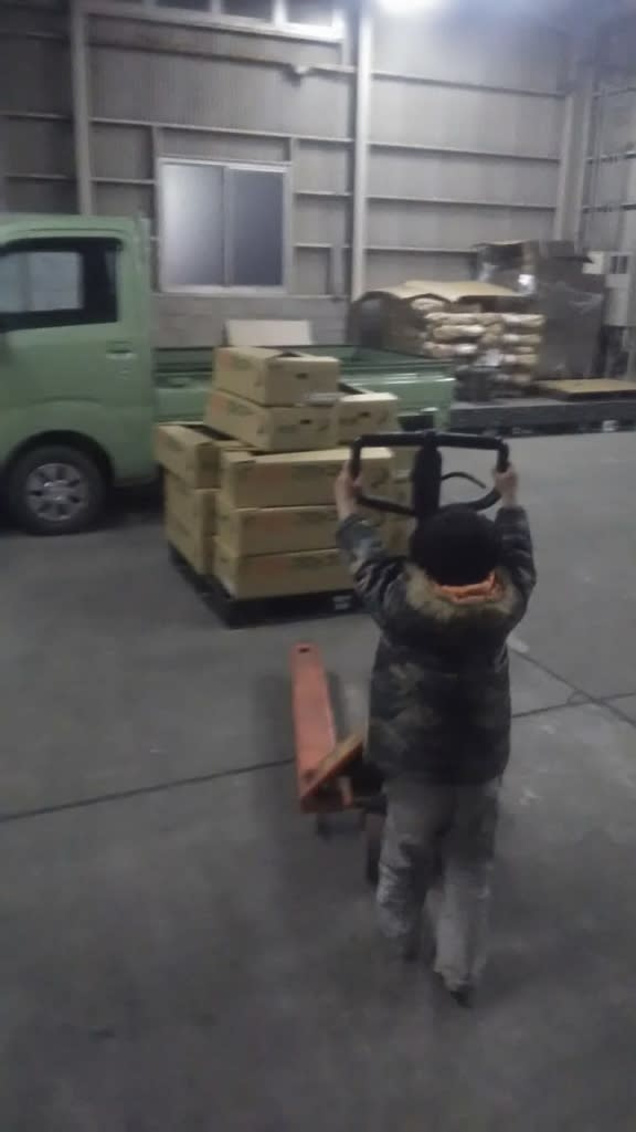 農協に着いてからも誰も出荷などしていない出荷場で、お父さんがブロッコリーの箱をパレットに下ろし、息子が道具を使いパレットを引っ張り保冷庫にしまうという一連の作業をしてくれました。