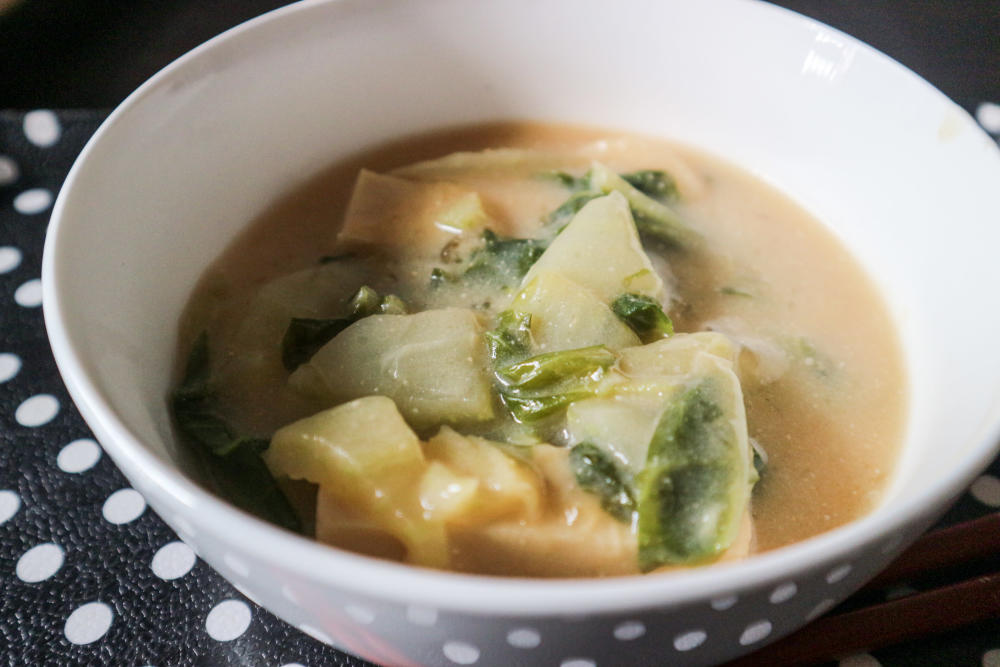 白菜・高野豆腐・麩を味噌・出汁・豆乳をあわせたスープで煮込み、片栗粉でとろみを出します。寒い日だからこそ、スープで心身ともに温まりたいですね。
