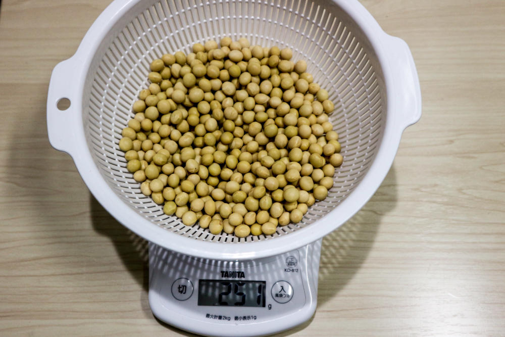 今回、使用した大豆は約250gです。購入したのは500gでしたので、半分ほど使いました。