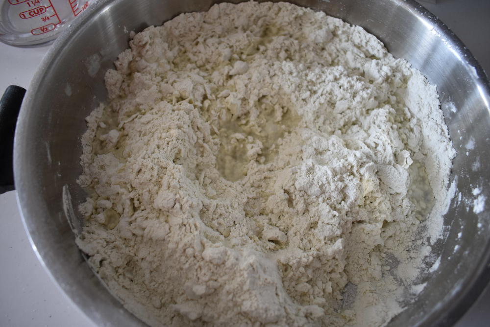 水を少しずつ、全体に行き渡るように入れて、まとめていきます。