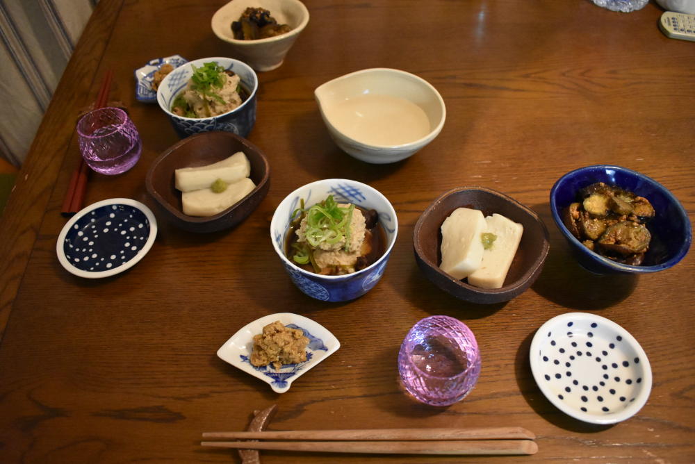 初めてのそば打ちが成功に終わりほっとしましたので、夜はそばづくしで晩酌と相成りました。